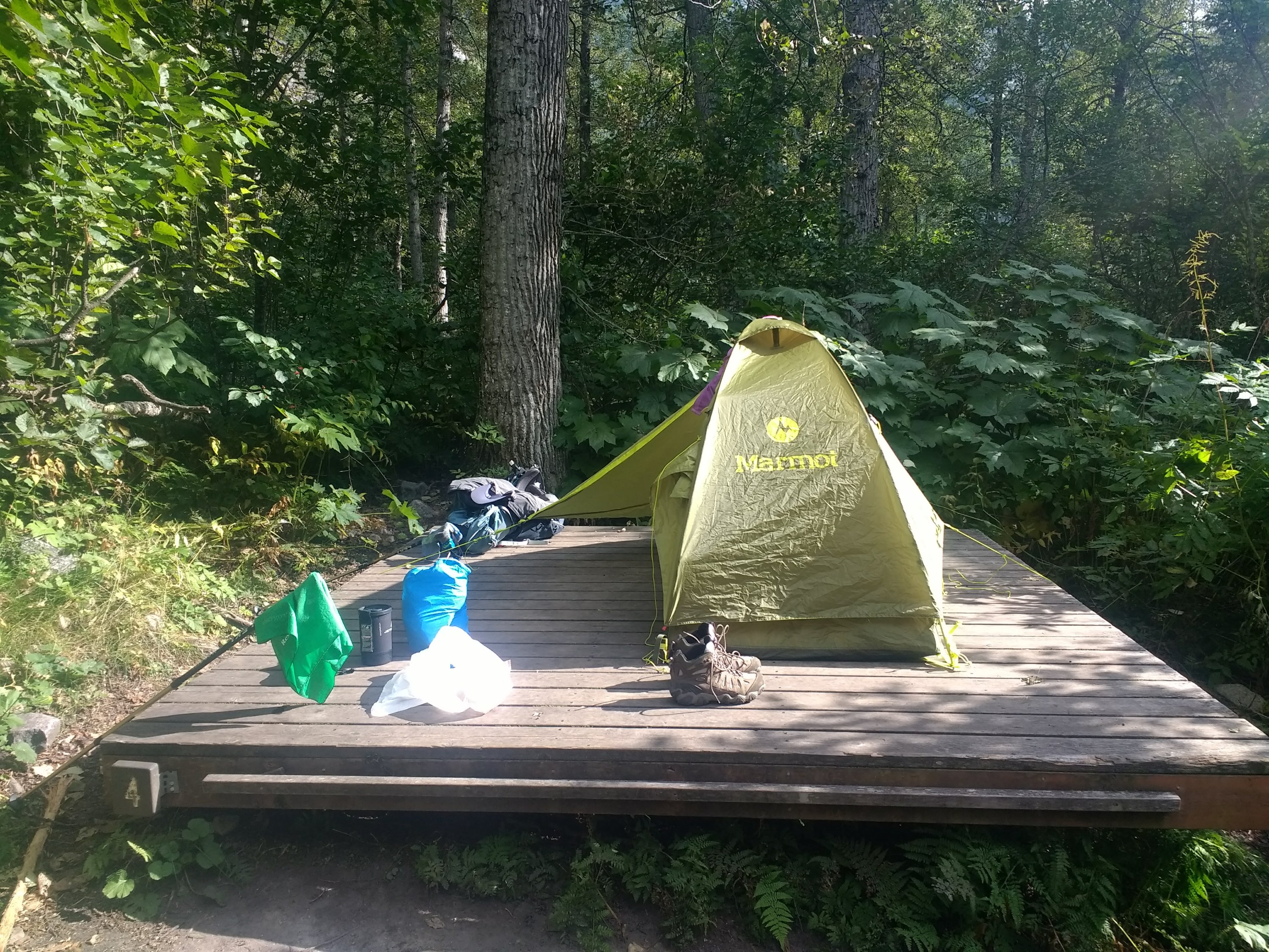 People funneled into camp throughout the afternoon and well into the evening. A couple of days later when I considered counting how many people there were at camp, I can picture at least 34, and I’m sure that there were people I didn’t see or didn’t recall in my memory. Far too many people to get to know, but I did chat with a few groups of people. Most were from Canada. They ranged in age from young children (maybe 10?) to older. I don’t dare guess how old, but one friendly gentleman from Oregon had been retired for at least a number of years.
