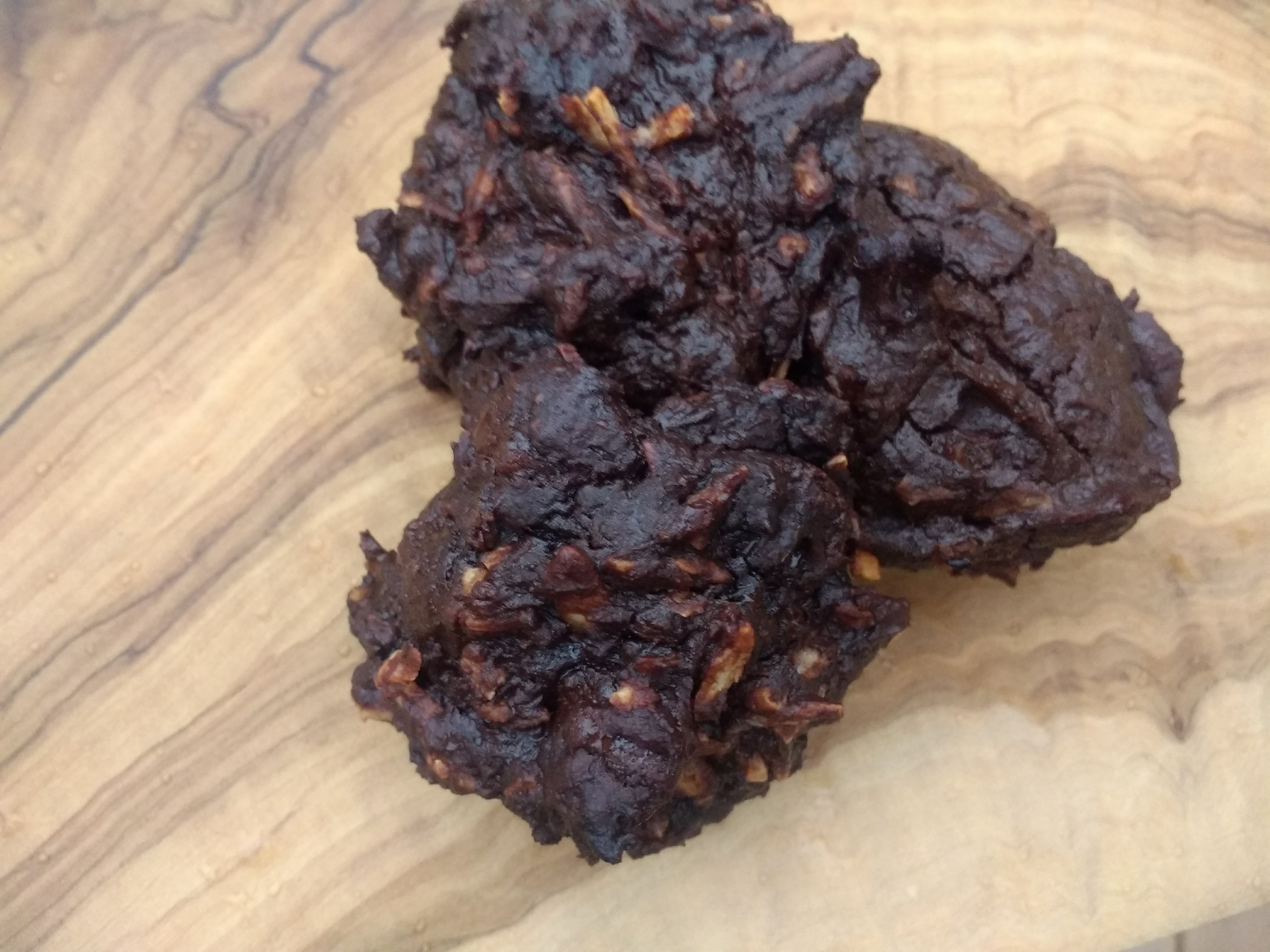 I usually have cookies stashed in the freezer. I often make them without a recipe, or modify a recipe because I use little to no sugar, and often add different ingredients. Usually they are okay. The last batch is better than okay and worth sharing! If you like chocolate but want to stay away from too much sugar, try these out.