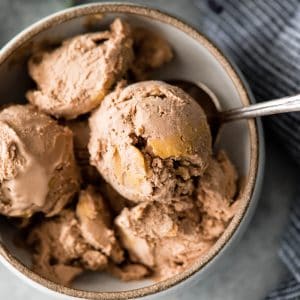 Chocolate Peanut Butter Ice Cream – a really yummy, dairy free, low sugar treat.